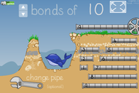 Richtig rechnen und Wal retten: passendes Rohr nach oben ziehen und auf das Rad klicken. Wenn die Rechnung richtig ist fließt Wasser.