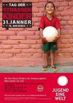 Am 31. Jänner, dem „Tag der Straßenkinder“, macht Jugend Eine Welt auf die Situation dieser Kinder und Jugendlichen aufmerksam. Besonderes Augenmerk legt der „Tag der Straßenkinder“ heuer auf das Schicksal der Kinder in Indien. Viele von ihnen kämpfen auf der Straße ums tägliche Überleben. Jugend Eine Welt unterstützt die Salesianer Don Boscos und die Don Bosco Schwestern weltweit, damit Straßenkinder eine Chance auf eine bessere Zukunft bekommen. Durch spezielle Programme und eine Ausbildung erhalten sie die Möglichkeit ihr Leben wieder selber zu gestalten.