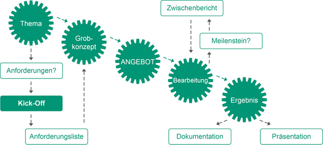 - Danach erstellt das Projektteam ein Angebot, das über das TheoPrax-Zentrum an die Firma geht (bis Anfang Dezember).