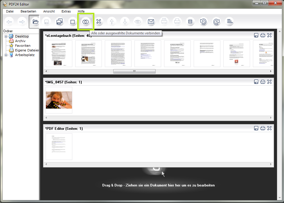 Wenn Sie nach weiteren Bearbeitungsfunktionen suchen, wie beispielsweise nach dem Zusammenfügen von mehreren PDFs in ein Dokument, dann empfehlen wir den PDF-Editor, der ebenfalls kostenlos zum Download zur Verfügung steht.