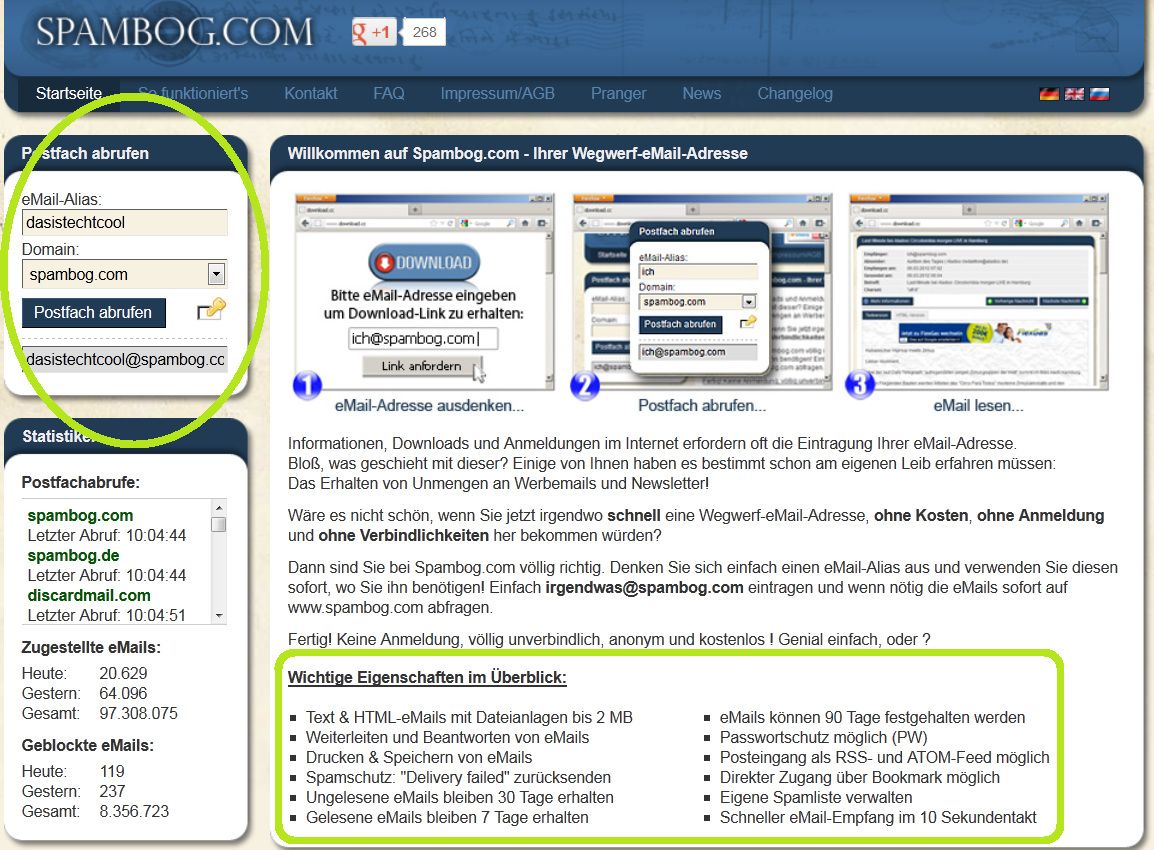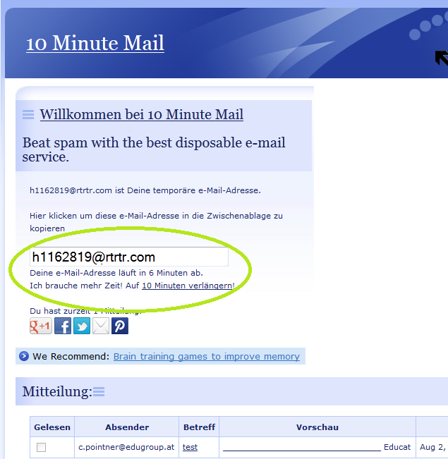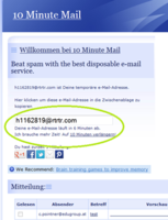 - 10minutemail.com (temporäre Mailadresse: 10 Minuten lang gültig)